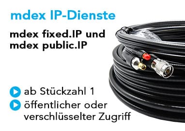 Ob M2M-SIM-Karten, Profi-Router in Industriequalität oder eine individuell skalierbare IoT-Plattform: mdex vernetzt Geräte, Maschinen und Anlagen sicher über Mobilfunk, Satellit und DSL. Mit flexiblen Daten-Tarifen, public IP und fixed IP, Verschlüsselung und zwei eigenen, unabhängigen Datacenter garantiert mdex IT-Sicherheit und Flexibilität für jedes Anwendungsszenario.